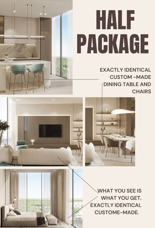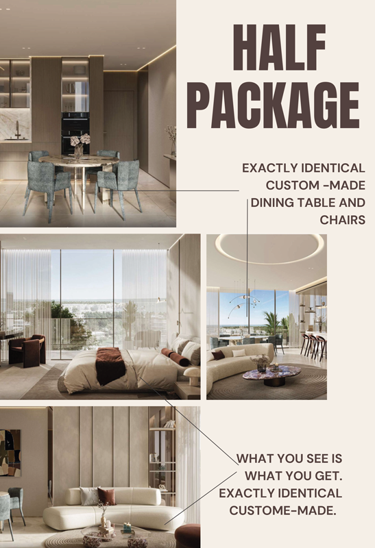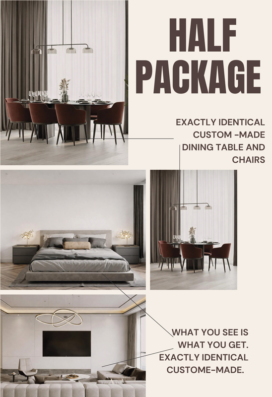 Includes all essential loose furniture pieces: beds with headboards, side tables, sofas,small sofa chair,coffee table, carpets, dining table, and dining chairs. Ideal for furnishing your home with a cohesive and stylish foundation.